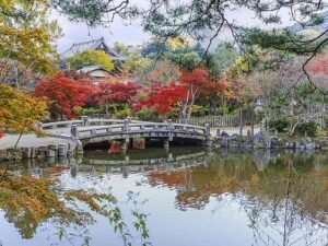 Visitaremos el imponente Chion-in, uno de los templos más importantes de Kioto, fundado en el siglo XIII como sede principal de la escuela Jōdo-shū. Su monumental puerta Sanmon, la más grande de la ciudad, marca la entrada a un espacio de profunda espiritualidad. A continuación, caminaremos por el Parque Maruyama, el parque más antiguo de Kioto, famoso por sus cerezos en flor y por ser desde el período Edo un punto de encuentro para locales y viajeros. Un recorrido que conecta la tradición religiosa con la vida cotidiana de la antigua capital.
