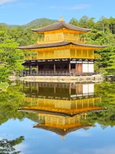 • Visita al Kinkaku-ji, el Pabellón Dorado, rodeado de jardines zen y reflejos dorados sobre el estanque.
